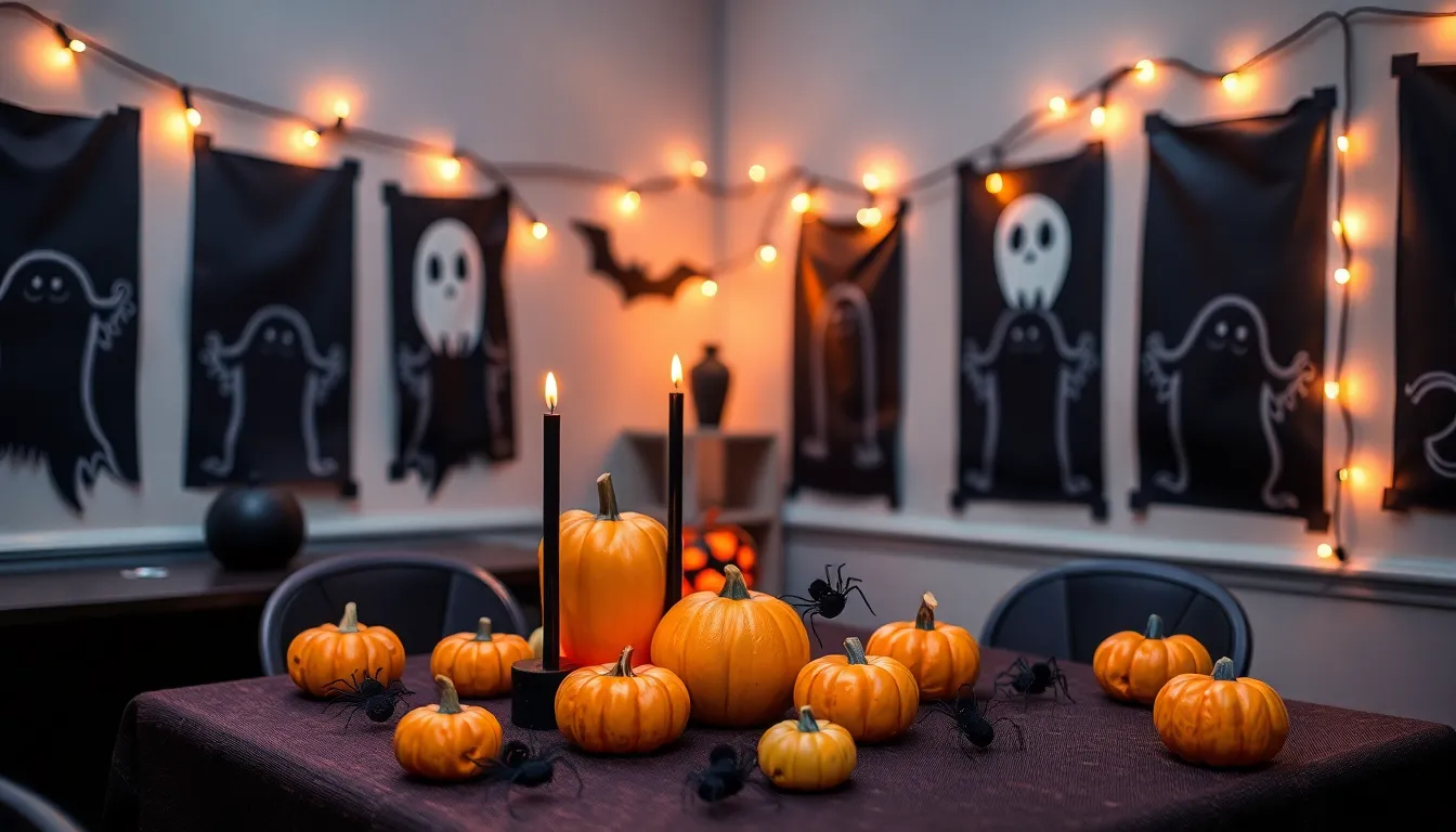 Centerpieces add flair to tables during Halloween gatherings. Use small pumpkins, black candles, and faux spiders to enhance the eerie atmosphere. Fill a large glass bowl with candy corn or mini skeletons for a fun twist. Fabric bats hung from the ceiling create a floating effect, drawing attention. Experiment with height by layering decorations, ensuring a dynamic visual experience.